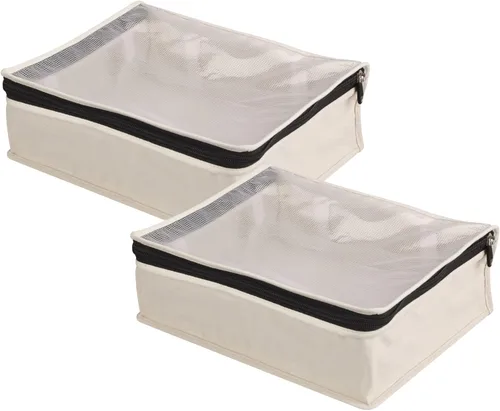 100 % Algodón Paquete de dos contenedores de almacenamiento con cremallera para suéteres y ropa de temporada Almacenamiento que ahorra espacio para debajo de la cama, en armarios y en estantes Material resistente que protege contra el polvo, las plagas y el desgarro Los lazos interiores adjuntos aseguran los paneles de cedro dentro de la bolsa (el juego incluye solo bolsas; los insertos cedarfresh se venden por separado) 3 pulgadas de alto x 14.5 pulgadas de ancho x 12.25 pulgadas de profundidad