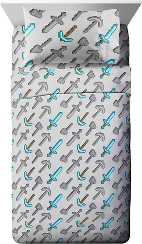 Diseño supersuave y divertido: dale un toque de encanto decorativo a la habitación de tu hijo con nuestro moderno y supersuave juego de sábanas de tamaño matrimonial de Minecraft. El juego de sábanas de tamaño matrimonial incluye 1 sábana bajera de 54 x 75 pulgadas, 1 sábana encimera de 81 x 96 pulgadas y 2 fundas de almohada estándar de 20 x 30 pulgadas. Gracias a sus colores vibrantes y su sensación acogedora, este juego de sábanas de tamaño matrimonial de Minecraft hará que la hora de irse a dormir sea divertida. De alta calidad y fácil cuidado: tu pequeño disfrutará de una sensación lo más acogedora posible. Nuestra tela transpirable es supersuave e ideal para todas las estaciones. Hecho con 100 % microfibra cepillada; lleva un revestimiento de poliéster que es resistente a la decoloración; permite dormir con comodidad. Para limpiar, lavar a máquina con agua fría. Para secar, secar al aire libre o en secadora a baja temperatura. Gran regalo: este juego de sábanas de tamaño matrimonial de Minecraft hará sonreír a cualquier niño. Este juego de sábanas de tamaño matrimonial transforma cualquier dormitorio, habitación de invitados, habitación de niños, casa rodante o casa de vacaciones; es el regalo perfecto para tu pequeño. Con diseños divertidos y coloridos; harán que tu hijo se emocione al irse a la cama. Se enrolla para facilitar el almacenamiento y los viajes. Compra la colección de Minecraft: completa tu dormitorio con nuestros otros productos de Minecraft. Vendemos ropa de cama conjuntada y accesorios (se venden por separado). Nuestra empresa familiar: nuestra empresa es aún pequeña y familiar. Estamos muy orgullosos de nuestros productos. Sabemos que nuestros maravillosos clientes son la razón por la que estamos en el negocio. Ofrecemos productos no tóxicos de excelente calidad. Gracias a nuestros accesorios a juego de Minecraft, podrás mezclar y combinar nuestros juegos de edredón para niño, juegos de edredón para niña, juegos de sábanas para niños o almohadas para niños, y son únicos y de gran calidad.
