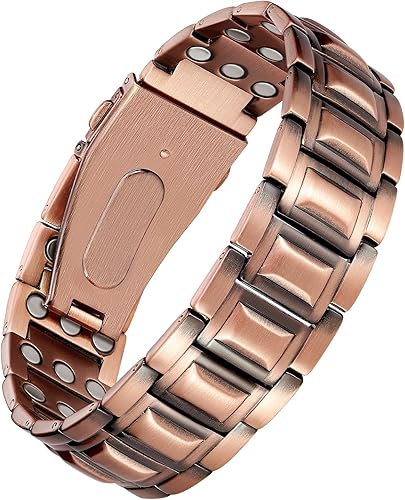 Jecanori Pulseras de cobre de 3 veces más fuerza para hombres, pulseras magnéticas para hombres con 3800 imanes Gauss, cierre plegable de alta