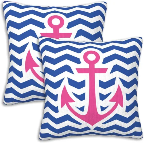 Juego de 2 fundas de almohada suaves con ancla náutica de 18 x 18 pulgadas, diseño de rayas en zigzag, modernas fundas de almohada para decoración