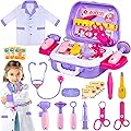 Kit médico de 12 piezas: ayuda a los niños a aprender sobre el cuerpo humano y calma los temores relacionados con el médico mientras participan en el juego de rol médico/paciente. El set de doctor tiene un surtido de 12 herramientas médicas y dispositivos que despertarán la imaginación de tu hijo. Funciones de herramientas realistas: la herramienta de simulación de batería incluida en el juego de juguetes ofrece ruidos de perforación realistas cuando el botón se empuja, lo que significa que tu pequeño puede imitar emocionalmente a mamá o papá trabajando en la casa. La cinta métrica incluida en el juego también es totalmente funcional y realista, por lo que es una excelente herramienta de aprendizaje. Efectos de sonido realistas: da vida al juego con sonidos divertidos. El teléfono celular cuenta con una gama de tonos emocionantes, y el estetoscopio produce un auténtico latido del corazón de la vida real y sonido de tos. Pilas incluidas. Seguro, súper fuerte y extra duradero: piezas hechas de los materiales más resistentes y seguros alrededor. Las herramientas de juguete serán resistentes a que tu hijo las tire, los deje caer o golpee mientras juega y finge. Su hijo podrá pasarlos a hermanos más jóvenes una vez que sean lo suficientemente viejos. Diseño resistente y apto para niños: a diferencia de los juguetes típicos que se fabrican hoy, nuestros juguetes están construidos con calidad, durabilidad y seguridad en mente. Los instrumentos de plástico resistente en este kit de médico de juego son fáciles de limpiar para la máxima higiene.