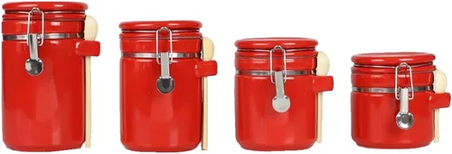 | Nombre Tipo Artículo | Home Basic - Juego de recipientes de cerámica de 4 piezas con cuchara hermética, contenedor de almacenamiento de alimentos para encimera de cocina, azúcar, café, recipiente, rojo |