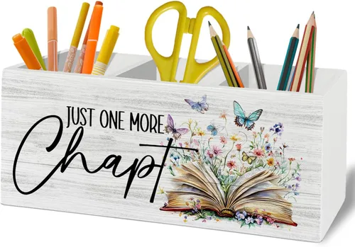 Pregunta sugerida sobre Solo un capítulo más Organizador de bolígrafos y lápices para escritorio, regalos para amantes de los libros, caja de madera con letrero ¿Este producto sí me sirve para lo que necesito?