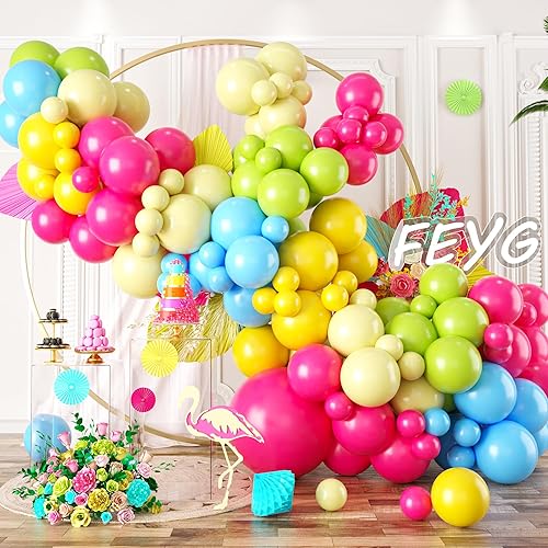 Kit de arco de globos arcoíris: nuestro kit de arco de globos multicolor ofrece una gama de tamaños de globos para adaptarse a diferentes necesidades. Incluye 1 amarillo de 18 pulgadas, 1 rosa intenso de 18 pulgadas, amarillo macarrón de 15 x 10 pulgadas, 15 x 10 pulgadas, amarillo frutal, 15 x 10 pulgadas, rosa fuerte, 15 x 10 pulgadas, azul claro, 8 x 5 pulgadas, amarillo frutal, 8 x 5 pulgadas, amarillo de 8 x 5 pulgadas, azul claro, 1 cadena de globos; 3 dispensadores. ing. Estos colores son vivos y vibrantes, se pueden añadir un atractivo visual único a tu ocasión. Material de alta calidad: nuestra colorida guirnalda de globos está hecha de látex natural, que no es tóxico, resistente y no es fácil de romper. Todos los globos se pueden llenar con aire y helio. Dado que el globo es transparente, el color será diferente antes y después del inflado. No llenes demasiado el globo. El 85% es suficiente. Por lo tanto, evite las quemaduras solares, el calor excesivo, los objetos afilados y la fricción excesiva. Fácil de montar: proporcionamos un kit completo de tiras de globos para ayudarte a poner el colorido arco de guirnalda de globos más fácilmente. Simplemente infla el globo y colócalo a la correa del globo, se recomiendan varios colores e infla en diferentes tamaños para darle a tu corona un aspecto impresionante. Y pega los globos de 5 pulgadas a los globos más grandes con dispensación de doble cara, y tendrás el telón de fondo de decoración de fiestas. Varias ocasiones: nuestro kit de arco de globos arcoíris es muy adecuado para fiestas de cumpleaños de niñas y niños, baby shower, bodas, fiestas de aniversario, graduación, fiesta de revelación de género, boda, aniversario, compromiso, despedida de soltera, decoraciones de despedida de soltera y otras actividades. Consejos: los globos mostrarán un color más oscuro antes de inflarse, si encuentras que los colores son diferentes a los de la imagen, intenta inflarlos y obtendrás un bonito color de globo correcto