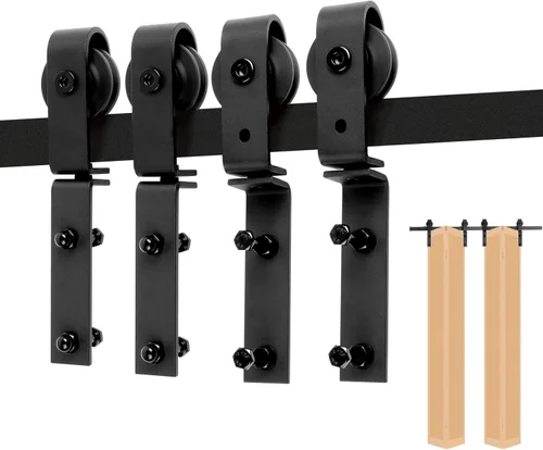 El kit de herrajes para puerta corrediza plegable está hecho de acero al carbono de alta calidad con rodillos de nailon de alta calidad, acabado negro mate, antioxidante, resistente a la corrosión, hermoso y duradero. Kit de herrajes para puerta corrediza de granero plegable, se adapta al grosor de la puerta: 1-3/8 pulgadas a 1-3/4 pulgadas, se adapta al ancho total del panel de la puerta debe ser inferior a 6 pulgadas de longitud de la pista, distancia mínima desde el borde superior de la puerta hasta el techo de 6 pulgadas.