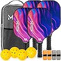 Juego de paletas de pickleball de grafito, raquetas de primera calidad, cara de fibra y polímero de núcleo de panal de abeja, incluye paletas de