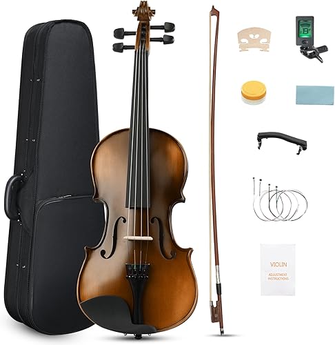 Ktaxon Violín 4/4 para niños y adultos, violín de madera maciza de tamaño completo, violín acústico con estuche portátil y accesorios - Madera
