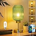 Lámpara de mesa vintage para dormitorio con bombilla, pequeña lámpara de cristal verde con puertos USB, lámpara de escritorio dorada regulable de 3