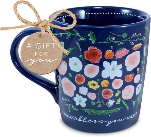 Lighthouse Christian Products Taza de café de cerámica Bless You Blue Floral de 20 onzas