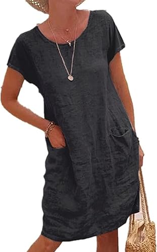 Linen Dress for Women 2023 Cotton Linen Dresses for Women Spring Summer Casual 34 Sleeve V Neck Midi Beach Dress