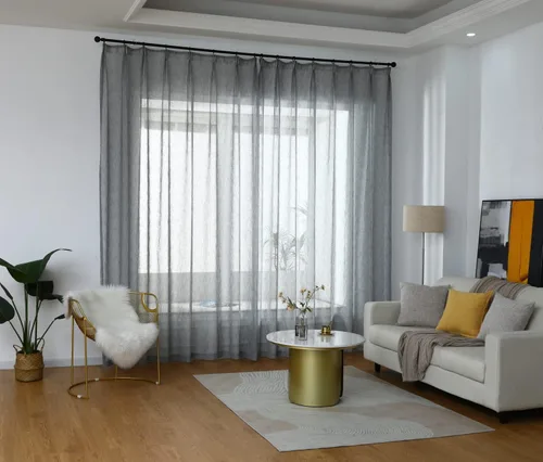 ModeloCortinas transparentes de lino gris de 96 pulgadas de largo