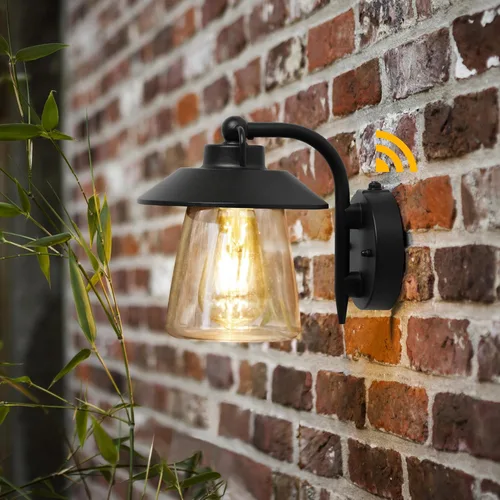 LUTEC Lámpara de pared interior y exterior de atardecer a amanecer, aplique de pared estilo granja, lámpara de pared con acabado negro mate