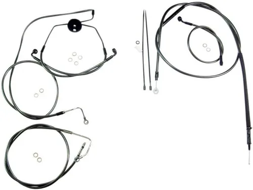 Los únicos kits completos con cables trenzados y líneas de freno a juego Los kits están disponibles para la mayoría de los modelos ABS y no ABS con 12 pulgadas. hasta 20 pulgadas. Manillares estilo colgador mono instalado Los kits incluyen cables de acelerador y ralentí (excepto aparadores 08-15), cable de embrague o línea de embrague hidráulico, líneas de freno delanteras, arandelas de trituración de cobre, hardware y extensiones de cableado correctamente coloreadas con conectores estilo OE y tubo retráctil Dos opciones de color trenzado para complementar tu bicicleta: Sterling Chromite II o Black Pearl Todos los accesorios son de cromo pulido o cromo negro