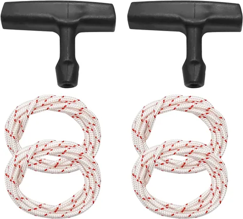 Lo que obtendrás: 2 asas de arranque de retroceso y 2 cables de arranque de retroceso de 0.177 in de diámetro Manijas de arranque de retroceso con cables de repuesto para STIHL TS350, TS360, TS400, TS410, TS420, TS460, MS380, MS381, 051, 051, 064, 066, 076, 084, 088, BT360 Números de pieza de intercambio: 0000 190 3414, 1122 190 3400 Pieza de repuesto de alta calidad: cuerda de 3.3 ft de largo y 0.177 in de diámetro, hecha de material de nailon resistente, suave y resistente al desgaste, fuerte y duradero para un uso prolongado Nota: Por favor, compruebe el tamaño de su pieza original para asegurarse de la compatibilidad antes de comprar
