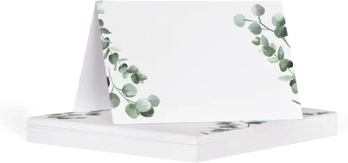 Manta Makes Tarjetas de lugar con nombre de eucalipto | Tarjetas de nombre de mesa plegadas en blanco y verde para recepción de fiesta, cumpleaños,