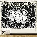 ARFBEAR Tapiz de sol y luna, sol ardiente con estrellas, psicodélico, popular tapiz místico para colgar en la pared, manta de playa en blanco y