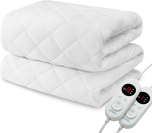 MATBEBY Protector de colchón térmico tamaño King, funda de colchón eléctrica con doble control y 8 ajustes de calefacción, calentador de cama con 4
