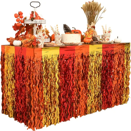 Pregunta sugerida sobre Mega-L - Decoraciones de fiesta de otoño, paquete de 2 faldas de mesa con flecos metálicos ondulados de oropel para mesa rectangular y redonda ¿Este producto sí me sirve para lo que necesito?