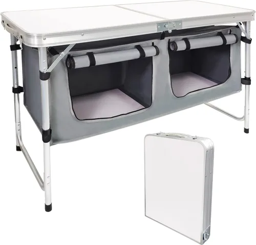 Mesa de camping plegable con almacenamiento de aluminio ligera, mesa de campamento, altura ajustable, mesas de picnic para exteriores, mesa de playa