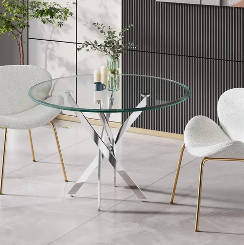 【Parte superior de cristal templado de seguridad】: la parte superior de la mesa de vidrio de 0.39 pulgadas de grosor con borde pulido biselado crea una sensación brillante y espaciosa para tu espacio de comedor, y te da un toque suave cuando lo tocas, el marco de metal conecta la parte superior y las patas, muy estable y no se tambalea, adecuado para una familia de 2 a 4 personas. Diseño moderno: elegante mesa de comedor con mesa redonda de vidrio templado, base de acero inoxidable con diseño X, con líneas limpias, acentos elegantes y una silueta llamativa. Un tamaño adecuado para el cálido hogar de los jóvenes contemporáneos. Mesa de cocina de vidrio resistente: las patas de acero inoxidable proporcionan una estructura sólida y fuerte para apoyar la mesa de vidrio y permitir que tu gato se quede en ella. Almohadilla resistente al desgaste que evita arañazos en el suelo y ruido. Uso versátil: esta mesa redonda de bistró no es solo una mesa de cocina, sino que también se puede utilizar como mesa de fiesta, mesa de conferencias, escritorio ejecutivo, escritorio de computadora de oficina, etc. Encuentra esta mesa multifuncional en más escenas como cocina, comedor, oficina o patio según necesites. Fácil de montar: es fácil de montar esta mesa contemporánea, todas las piezas y herramientas etiquetadas están incluidas, siguiendo estrictamente las instrucciones, terminarás en 20 minutos.