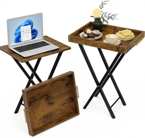 👍 SIN MONTAJE REQUERIDO – LISTO PARA USAR INSTANTÁNEAMENTE — Esta mesa de bandeja plegable marrón rústica viene totalmente montada. Con un tamaño desplegado de 18.9 pulgadas de largo x 13.8 pulgadas de ancho x 25.5 pulgadas de alto, es perfecto para comidas, trabajo o noches acogedoras en casa. 👍TEXTURA NATURAL DE MADERA QUEMADA – EL ENCANTO RÚSTICO SE ENCUENTRA CON EL DISEÑO MODERNO — La parte superior de grano de madera quemada y las patas de metal negro mate aportan una estética acogedora de granja que complementa la decoración rústica, industrial o moderna. BANDEJA DESTACABLE DE MADERA PARA USO VERSÁTIL — La bandeja extraíble de 15.7" × 20.1" con bordes de 2.5" de profundidad es ideal para el desayuno en la cama, servicio de café o aperitivos en la sala de estar. 🔝PLEGABLE PARA UN ALMACENAMIENTO FÁCIL Y ESPACIO REDUCIDO — Esta mesa auxiliar plegable se guarda perfectamente detrás de un sofá o debajo de una cama — la solución perfecta para ahorrar espacio en apartamentos pequeños o dormitorios. ✅ CONSTRUCCIÓN ESTABLE Y DURADERA — Construida con patas de acero resistentes y un marco en X reforzado, esta mesa de acento rústico proporciona una estabilidad confiable para el uso diario.
