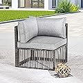 mimbre/ratán Medidas del sillón de comedor: la colección Aura es ideal para cualquier velada de verano. Incluye tapas de pie que no dejan marcas para proteger el suelo. Dimensiones: 21.5 pulgadas de largo x 24 pulgadas de ancho x 33.5 pulgadas de alto; capacidad de peso: 331 libras. Estilo contemporáneo: actualizando cubiertas, patios traseros y piscinas, esta colección cuenta con líneas limpias y un perfil moderno. Los cojines para todo tipo de clima de 2.5 pulgadas y las fundas lavables a máquina garantizan una comodidad elegante Cena al aire libre: disfruta de una cena bajo las estrellas o de un almuerzo soleado en el patio con esta silla de comedor al aire libre. Ideal como silla decorativa o alrededor de la mesa del comedor, este sillón ofrece comodidad de apoyo Resistente a la intemperie: construida para uso en exteriores, esta silla de mimbre cuenta con un marco de aluminio recubierto de polvo y está tejida con ratán sintético gris sobre gris resistente al agua y a los rayos UV que otorga una textura única Renueva el patio: actualiza tu patio trasero o porche con una acogedora silla de comedor moderna para patio. Se adapta sin esfuerzo a las necesidades de tus invitados mientras crea el entorno perfecto para comer en el patio al aire libre
