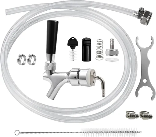 Kit completo de repuesto Kegerator: el kit de grifo de vástago de cerveza MRbrew Draft incluye todo lo que necesitas para actualizar o reemplazar tu sistema de dispensación Kegerator. Este conjunto completo cuenta con un grifo de cerveza de cuerpo de latón de núcleo inoxidable, línea de cerveza, mango de grifo, resortes de cierre automático de grifo de cerveza, vástago de cerveza de púas de 1/4 pulgadas con cuello, arandela de sellado, tuerca hexagonal, ajuste de pieza de cola de 1/4 pulgadas, llave de grifo de cerveza, cepillo de limpieza de grifo de cerveza y cubierta antipolvo, abrazaderas de manguera. Perfecto para sistema dispensador de grifo de barril acoplador casero y sankey. El resorte de cierre automático evita el desperdicio y derrames de cerveza: nuestro resorte de grifo de cierre automático de acero inoxidable incluido garantiza que el grifo de cerveza se cierre automáticamente, minimizando el desperdicio de cerveza y manteniendo su estación limpia. Nota crítica de instalación: Para un rendimiento óptimo, orientar el resorte con el extremo estrecho que mira hacia el grifo → torre orientada hacia el extremo ancho. Fácil instalación en la torre de cerveza: configuración sin complicaciones: conecta la línea de cerveza al vástago y aprieta la abrazadera de manguera de una sola vez → Alimenta la línea de cerveza a través del agujero de la torre de cerveza, luego desliza la arandela blanca y la tuerca hexagonal → Asegure el vástago del grifo de cerveza a la torre con alicates de llave para un sello sin fugas, configuración rápida con un ajuste apretado y profesional. Sello sin fugas con materiales de grado alimenticio: las roscas estándar y las arandelas de goma resistentes al desgaste integradas garantizan un sellado hermético y a prueba de fugas cuando se aseguran con la llave de grifo incluida. Hecho de materiales sin olor y de grado alimenticio para preservar el sabor auténtico de tu cerveza, esta configuración ofrece un vertido limpio y confiable, ¡mejorando tu experiencia general en torres de cerveza! Soporte posventa dedicado: En MRbrew, la satisfacción del cliente es nuestra prioridad. Si tiene alguna pregunta o inquietud sobre las piezas de repuesto de la torre Kegerator, simplemente comuníquese con nosotros, y nuestro equipo está aquí para ayudarlo incansablemente.