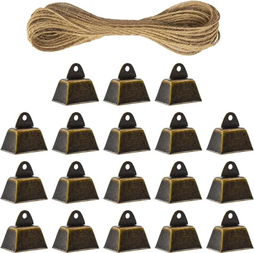 El paquete incluye: 18 cascabeles de bronce vintage y una longitud de 9.8 ft de cordel Tamaño: El juego de 18 campanas de cobre. El tamaño es de 1.02 x 0.75 x 0.83 pulgadas. La campana tiene un diámetro de agujero de 0.15 pulgadas. Pequeño y ligero, fácil de transportar y decorar. Material de alta calidad: nuestras campanas de latón para pastoreo de vacas, caballos y ovejas están hechas de hierro duradero y chapadas para garantizar una durabilidad duradera y resistencia a la corrosión. Decoración ideal: además del uso funcional, nuestras campanas de cobre para manualidades también se pueden utilizar como decoraciones navideñas, como Navidad y Halloween, añadiendo un toque de encanto rústico a sus decoraciones navideñas. Uso multifuncional: Las campanas de color bronce emiten un sonido fuerte y agradable, lo que facilita la localización de sus animales incluso desde la distancia. Estas campanas de cobre que cuelgan de cuerda son adecuadas para una variedad de usos, incluyendo atarlas a los collares de vacas, caballos y ovejas, proporcionando una manera práctica y efectiva de rastrear su ubicación. Así como para uso en manualidades y joyas colgantes. Las campanas de cobre para mascotas también se pueden utilizar como campanas de prevención de pérdida de mascotas.
