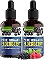 Organic Elderberry Syrup, 60 Day Supply, Black Liquid Drops for Immune Support, Sambucus Elderberry Syrup - Liquid Extract Drops for Kids & Adults -