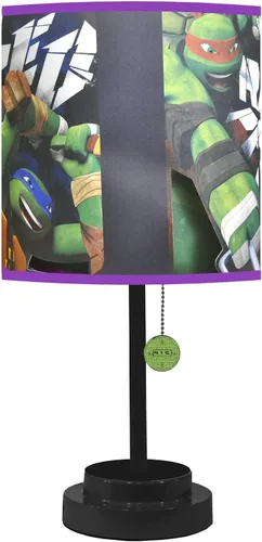Diseño apto para niños: ilumina una habitación con esta lámpara decorativa para niños diseñada con gráficos impresos de Teenage Mutant Ninja Turtles. Un tema divertido para añadir a la habitación de un niño, espacio de juego o área de estudio con esta lámpara de Tortugas Ninja. Diseño de calidad: compacto y relativamente ligero, proporciona la iluminación que necesita donde sus hijos duermen o juegan. Esta colorida lámpara de personajes temáticos cuenta con una base de metal y una pantalla impresa temática. PULL CHAIN: Esta lámpara de mesa está diseñada simplemente con una cadena de tracción. Esta lámpara utiliza un enchufe eléctrico para funcionar. Tira suavemente de la cadena para poner y quitar, una característica fácil de añadir. Tamaño correcto: esta lámpara de mesa mide 9 pulgadas de profundidad x 9 pulgadas de ancho x 18 pulgadas de alto, por lo que es perfecta para mesas auxiliares de cama, aparadores o escritorios. Un tamaño práctico ideal. ILUMINACIÓN Y FÁCIL CASRE: Se requiere una bombilla de 40 vatios para el uso de iluminación. No incluido. Limpiar con un paño para un fácil cuidado.