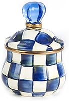 MACKENZIE-CHILDS Azucarero con tapa esmaltada, tazón pequeño para servir con tapa, capacidad de 10 onzas, azul y blanco Royal Check