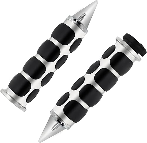 【Ajuste】Las empuñaduras de motocicleta SOLO SE AJUSTAN a motocicletas con manubrio del acelerador de cable con un diámetro de agujero de 22 mm (izquierda) y 25 mm (derecha). Compatible con Harley Dyna 1992, Fatboy 2001-2006, Road Glide 1998-2019, Softail 1986-2017, Street Glide 2006-2020, Tour Glide 1981-1996. NOTA: Comprueba cuidadosamente si tu modelo está incluido en el ajuste antes de comprar!! ! 【Antideslizante y duradero】Los puños del manillar están hechos de aluminio CNC billet, el diseño de la superficie con la ranura antideslizante nítida proporciona un mejor manejo de la motocicleta, aumenta la fricción, agarre cómodo y fácil de agarrar garantiza tu seguridad. Acabado cromado, antioxidante, antioxidante y resistente a la corrosión, fácil instalación y limpieza. Diseño de agarre de asistencia del acelerador: aspecto personalizado único, moderno, elegante, atractivo y funcional. Añade características a tu motocicleta, mejora la apariencia de tu motocicleta. Empuñaduras para motocicleta estilo Spike con control de asistente del acelerador en el lado derecho, y hará que el funcionamiento sea más fácil, y el acelerador no necesita apretar el agarre. 【Fácil de instalar】Instalación fácil, no se necesitan modificaciones, simplemente retira tus agarres actuales e instala los nuevos agarres de manillar. Estas empuñaduras son un reemplazo ideal para tu anterior. 【Compra con confianza】Recibirás 1 par de empuñaduras con un diámetro de agujero de 22mm (izquierda) 1" / 25mm (derecha). NOTA: ¡No se ajusta a las empuñaduras de mango más grandes de 25 mm!!! Por favor, no dude en ponerse en contacto con nosotros si tiene alguna pregunta.