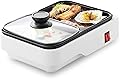 Diseño 3 en 1: combina una olla, una parrilla y una bandeja para hornear para que puedas disfrutar de la olla caliente y la barbacoa interior al mismo tiempo con las funciones de hervir, cocinar al vapor, hornear, freír y guisar. Su tamaño compacto (20.16 x 9.65 x 3.74 pulgadas) y su peso ligero (9.06 libras) permiten un fácil movimiento y almacenamiento cómodo. Control de temperatura separado: las dos perillas de control de temperatura independientes garantizan un control conveniente de la temperatura de cocción de diferentes ingredientes y permiten el uso por separado de la olla y la bandeja para hornear. Las dos luces indicadoras muestran el estado normal de funcionamiento del producto. Fácil de limpiar: la superficie lisa y la olla, la parrilla y la bandeja para hornear extraíble te permiten limpiar este producto con un paño de limpieza o esponja sin abrasivo y con agua tibia y jabón. Diseño cuidadoso: las tapas transparentes pueden reducir la pérdida de calor, y el mango en la parte superior te permite recoger fácilmente la tapa. Mientras tanto, las asas en ambos lados de la maceta pueden proteger tus manos de quemaduras y permitirte mover fácilmente la olla. Calentamiento rápido y uniforme: el tubo de calentamiento de doble anillo de alta potencia (2200 W) puede realizar la recolección de energía circundante y tiene un área de calefacción más grande y un efecto de calentamiento más uniforme en la bandeja para hornear. Puedes disfrutar de una deliciosa comida en poco tiempo.