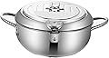 Olla de acero inoxidable, sartén de aceite con termómetro, freidora de fondo plano desmontable de 7.9 in/9.4 in para anillos de calamar perfectos,