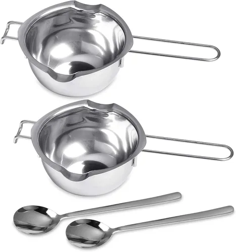 Maceta pequeña y bonita: nuestra caldera doble de 14 oz/13.5 fl oz se adapta a la mayoría de las ollas. Diseñado para adaptarse perfectamente a sartenes y ollas más pequeñas y calienta alimentos delicados más suavemente que tu olla o cacerola promedio. Ideal para cocinar al vapor pequeñas cantidades de alimentos. Como cocinar al vapor la comida de tu bebé. Material superior: la olla doble está hecha de acero inoxidable 304 y libre de BPA. Antioxidante y resistente, y temperatura adecuada para derretir cosas pero no para destruir la nutrición. Apto para lavavajillas. Trae tu experiencia de cocina conveniente. Diseño científico: con alargamiento del mango, manteniendo tus manos alejadas del calor y líquidos hirviendo. Gancho frontal para evitar que se deslice y también es adecuado para guardar y colgar. Las boquillas de doble vertido evitan salpicaduras de líquido. AMPLIA APLICACIÓN: Nuestra olla de doble caldera de acero inoxidable se puede aplicar para derretir chocolate, dulces, queso, mantequilla, caramelo, cera, jabón, vela. También se puede utilizar como un recipiente de salsa normal o mantener caliente. Adecuado para el hogar, cocina, hoteles, tiendas, restaurantes, etc. Diseño elegante y elegante: con un diseño elegante y elegante, esta olla de doble caldera no solo cumple su propósito, sino que también añade un toque de clase a tu colección de utensilios de cocina. Es una combinación perfecta de funcionalidad y estética.