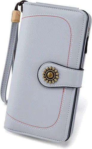 Revestimiento de Cuero sintético Cierre de Cremallera Cartera de mujer de alta calidad: hecha de tela de piel sintética suave de alta calidad, esta cartera para mujer es duradera y brillante. Cremallera resistente similar a la plata para sujetar la estructura firmemente y de forma segura. Las costuras hechas a mano a lo largo de los bordes hacen que la funda sea firme siempre y cuando deba ser. Gran capacidad: 28 ranuras para tarjetas y 2 ventanas para identificación, 4 ranuras para recibos, 2 compartimentos para dinero en efectivo y 1 compartimento para monedas, 1 bolsillo con cremallera. Mucho espacio para llevar nuestro teléfono, dinero en efectivo, tarjetas y recibos, tarjeta de identificación, licencia de conducir o foto familiar. Carteras para mujer con práctica correa de muñeca: ¿Estás cansado de sostener tu cartera todo el tiempo mientras te mueves? ¿Te gustaría una forma más fácil de manejarlo? Entonces aquí lo tienes. Cada una de nuestras carteras viene con una correa de muñeca que te permite llevar tu cartera sin ningún inconveniente convenientemente. Bloqueo RFID: nuestras carteras están equipadas con un avanzado material de bloqueo patentado, que bloquea las señales RFID y protege la valiosa información privada almacenada en chips RFID de escaneos no autorizados. Probado y aprobado por pruebas de laboratorio independientes. Probado para frecuencia de 13,56 MHz en la que funcionan las tarjetas de crédito. Alto rendimiento de seguridad. Cartera con cremallera doble: Tamaño de esta cartera: 7.5 pulgadas de largo x 4.0 pulgadas de ancho x 2.2 pulgadas de alto. Peso 0.55 libras / 0.6 lbs. El bolsillo interior es espacioso y puede contener tu iPhone Plus Cartera larga clásica con muñeca renovable, fácil de combinar con diferentes variedad de ropa en ocasiones en interiores y exteriores, el mejor regalo para madre, novia, tía, abuela.