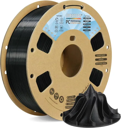 OVERTURE - Filamento PC Profesional, carrete de cartón, 1kg (2.2 libras), precisión dimensional +/- 0.02mm, compatible con la mayoría de impresoras
