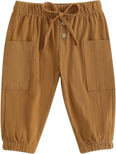 ¿Para qué sirve Pantalones deportivos de algodón y lino para bebés, niños y niñas, elásticos, con botones básicos, estilo harén, ropa de otoño?