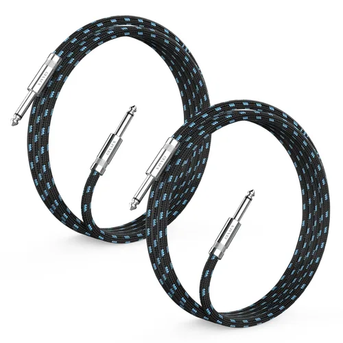Versión actualizada, bajo ruido y alta fidelidad: con escudo trenzado OFC de alta densidad al 95% y aislamiento de material TPE de mayor calidad, el cable de guitarra Sovvid tiene un mejor rechazo de ruido y antiinterferencias en comparación con otros cables trenzados en espiral y de capa de aluminio. Las múltiples capas de blindaje y aislamiento para reducir el zumbido, proporcionan un alto rendimiento estable y un sonido puro Estabilización de señal, transmisión de audio más rápida: los cables de guitarra Sovvid tienen cobre sin oxígeno de 22 AWG de alta pureza (OFC) en los conductores centrales y el escudo aislante que mejoran la transferencia de señal y la estabilidad. Mantiene la transmisión de audio sin retraso y garantiza una transferencia mínima de pérdida de señal Amplia aplicación, fuerte compatibilidad: El cable de guitarra de alta calidad de 1/4 de pulgada es adecuado para dispositivos de guitarra acústica eléctrica, mezclador, amplificador de potencia, bajo, ukelele, altavoz, micrófono, teclado, efector de pedal, órgano electrónico o batería, decodificador y otros instrumentos musicales. El cable auxiliar macho de 6.35 mm a 6.35 mm macho funciona perfectamente con todos los dispositivos que tienen un conector auxiliar estándar de 6.35 mm y puerto de entrada auxiliar. Ampliamente utilizado en el campo de dispositivos de hogar inteligente, audio profesional de escenario, etc Durabilidad, flexibilidad y seguridad superiores: chaqueta de nailon trenzado con más de 15,000 dobleces probadas tiene mejor resistencia a la tracción y a la abrasión que otras chaquetas de plástico rígido. Evita que se retuerza y no se enrede. El cable de guitarra Sovvid es más efectivo para garantizar la seguridad del uso y resolver el problema de interferencia electromagnética de ruido Alto rendimiento, garantía de 1 año: El enchufe niquelado de ángulo recto a recto de 1/4 pulgadas de Sovvid es antioxidante y de excelente conductividad. La carcasa de cobre giratoria protege mejor las conexiones soldadas, goma interna especial para evitar que el núcleo vibre. Esto garantiza una conexión segura en cualquier instrumento, permite muchos años de uso sin problemas
