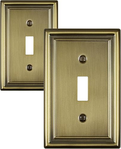 Paquete de 2 cubiertas para interruptor de luz, cubierta de placa de interruptor de palanca individual, placa decorativa de pared de metal de latón