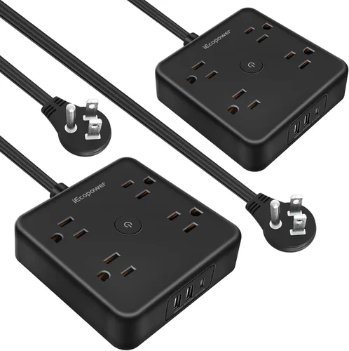 【Protección contra sobretensiones de enchufe ultraplano de 0.31 pulgadas】-Solo 0.31 pulgadas de enchufe ultradelgado, diseño de ángulo recto de 45 grados, más delgado que los enchufes tradicionales, puede encajar fácilmente en la pared, oculto en la parte posterior de los muebles, la cama o el refrigerador, para resolver las necesidades de escenarios complejos del uso de las necesidades del hogar para maximizar el uso de cada centímetro de espacio. Regleta de alimentación de escritorio 7 en 1 con puertos USB: regleta protectora de sobretensiones con 4 salidas de CA y 3 puertos USB (1 puerto USB C), esta tira de alimentación USB puede cargar hasta 7 dispositivos simultáneamente con no más de 1250 W/10 A. El chip IC inteligente integrado se ajusta automáticamente y proporciona una velocidad de carga óptima para tus dispositivos electrónicos con salida de alimentación USB de hasta 2.4 A/puerto, puerto USB C MAX 5V/3A, 15W total. Protector de sobretensiones de seguridad con puertos USB: certificado de seguridad ETL, hecho de ABS ignífugo + PC (grado: UL-V0, la clasificación de fuego más alta), puede soportar altas temperaturas de hasta 1382 ℉, condensadores de estado sólido de alta gama para garantizar una protección completa de tu dispositivo contra cortocircuitos eléctricos, sobrecalentamiento, sobrecarga, sobrecorriente y sobretensión, por lo que no se calienta durante el uso y mantiene tu dispositivo seguro. 【Apto para cualquier ocasión】 - 6 pies de cable de extensión con protector contra sobretensiones con 4 gomas antideslizantes en la parte inferior que pueden mantenerse estables en su escritorio o mesita de noche sin deslizarse, además de 2 ubicaciones de orificios de montaje en la parte posterior de la regleta de enchufes para una fácil instalación en paredes horizontales o verticales o montaje debajo del escritorio para mayor facilidad de uso. Lo que obtienes: paquete de 2 regletas de enchufe plano y 2 juegos de tornillos de montaje; si tienes algún problema con nuestro producto, ponte en contacto con nosotros y te responderemos en 24 horas.