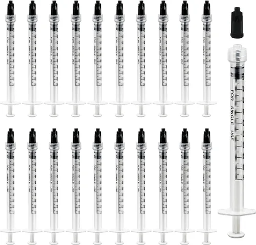 Paquete de 30 jeringas de plástico de 0.03 onzas líquidas de capacidad, envoltura individual estéril (sin aguja), jeringas Luer Lock con tapa,