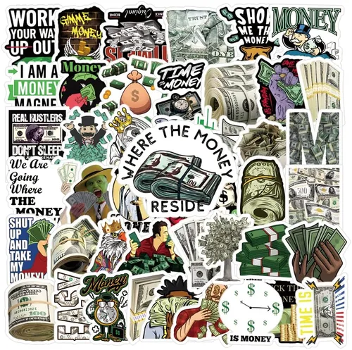 Paquete de 63 calcomanías de dinero, calcomanías impermeables de vinilo de graffiti de moda para botella de agua, laptop, teléfono, patineta, álbum