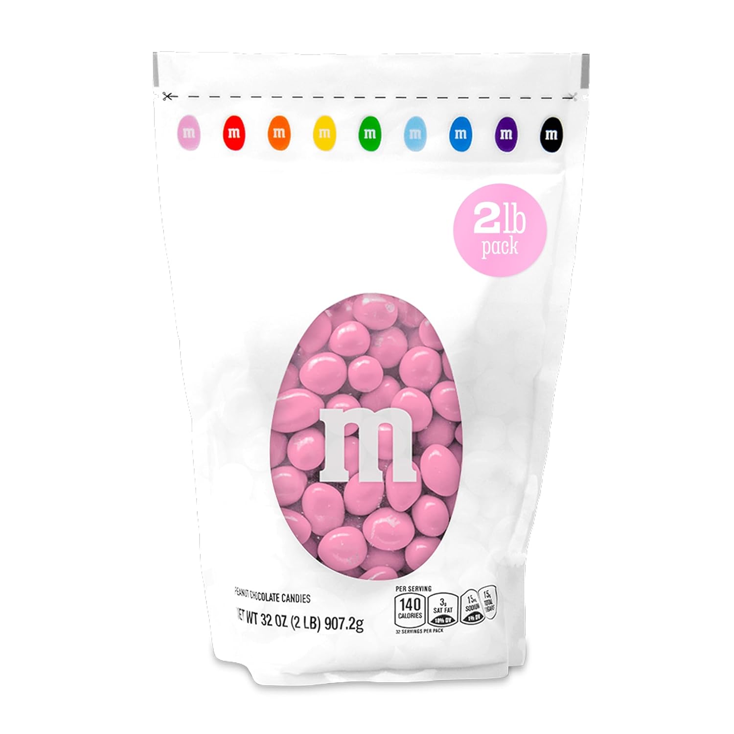 M&M'S WORLD Caramelos de chocolate con maní rosa – 2 libras de dulces a granel en paquete resellable para bufé de dulces, fiestas de cumpleaños,