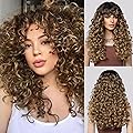 LONAI - Peluca rubia rizada larga con flequillo para mujer WIG006, peluca de pelo sintético, estilo vintage, para uso diario, fiesta, disfraz -
