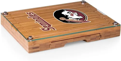 Este juego de tabla de queso NCAA Picnic Time Concerto combina forma y función en una armonía perfecta de bambú, vidrio templado y acero inoxidable. La base gruesa del Concerto cuenta con una gran tabla de cortar de bambú completa con una ranura empotrada en el perímetro interior para atrapar salmuera de queso o escorrentía de jugo. Dentro de la base hay un cajón extraíble con depresiones talladas con precisión que albergan las tres herramientas de queso de acero inoxidable dentro, incluyendo una cada una: cincel de queso desmenuzable, cuchillo de queso de punta puntiaguda y tenedor de queso de 2 puntas, todo en acero inoxidable. La bandeja de vidrio templado tiene el logotipo de tu equipo favorito y se ajusta perfectamente en la parte superior de la tabla de cortar. La pieza de vidrio también se puede levantar del tablero y usarse como una segunda superficie de corte o servicio, mientras que sus patas de goma elevan el vidrio de la encimera, protegiendo la superficie de arañazos. El Concierto combina practicidad y versatilidad en una hermosa pieza entretenida, perfecta para el buffet del día del partido. Mide 13 x 10 pulgadas y viene en caja de regalo con la garantía limitada de por vida de Picnic Time.