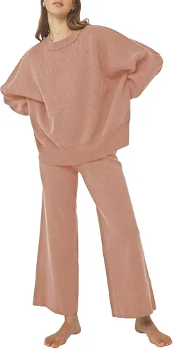 Pink Queen Conjunto de 2 piezas para mujer, suéter de punto sin botones y pantalones de pierna ancha, conjunto de chándal suelto