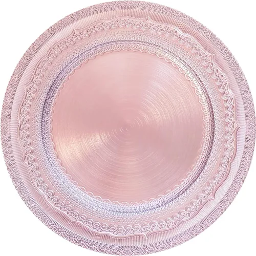Pregunta sugerida sobre Platos de carga de 13" de aluminio rosa, juego de 6 platos elegantes con relieve de encaje, platos de servidor redondos para plato de cena, juego ¿Qué incluye exactamente este set?