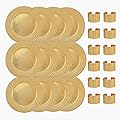 Tanlade Juego de 72 Piezas de Platos Base Navideños a Granel, 24 Piezas de Platos de Corona Floral de 13'', Servilleteros y Servilletas de Tela,