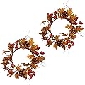 Juego de 2 anillos de vela de cono, bellota y hojas de otoño de 10 pulgadas